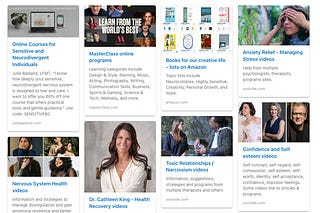 My Pinterest Page is another collection of resources with information and programs by psychologists, health coaches, artists, and others.